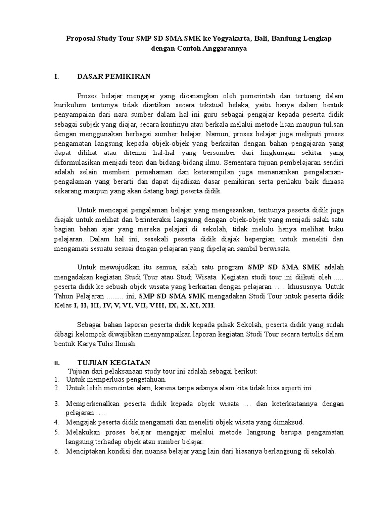 Proposal Study Tour SMP SD SMA SMK ke Yogyakarta, Bali, & Bandung Lengkap dengan Contoh Anggarannya - 1 Foldersoal