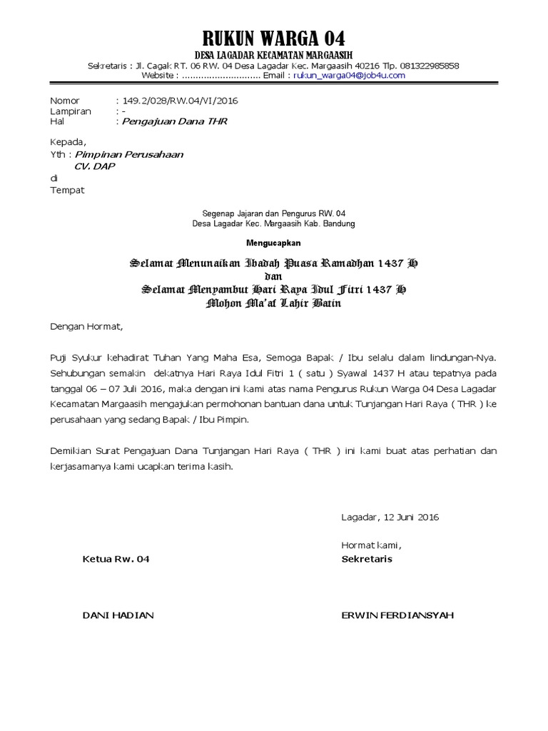 Contoh Surat Permohonan Thr Ke Warga - Kumpulan Contoh Surat
