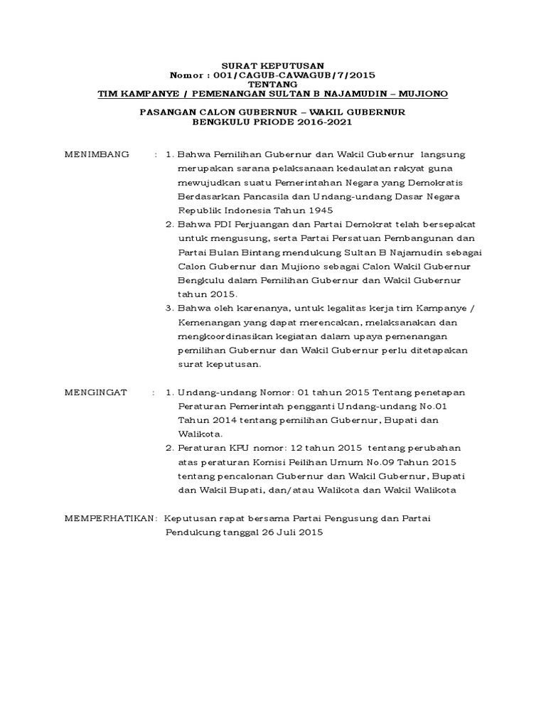 Contoh Sk Tim Pemenangan Calon Kepala Desa - Guru Ilmu Sosial