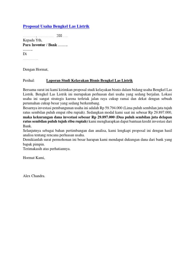 Proposal Usaha Bengkel Las Listrik - [DOC Document]