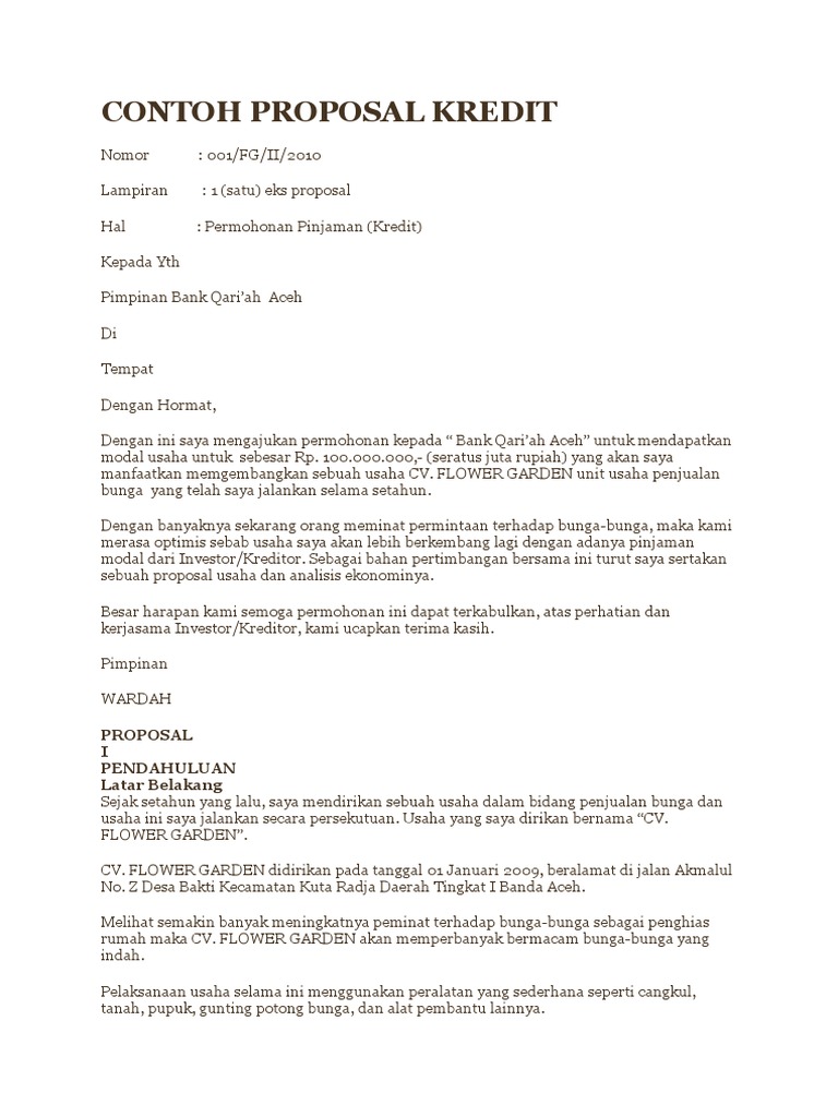 DOC) Contoh Proposal Permohonan Kredit | Azka Mufida - Academia.edu