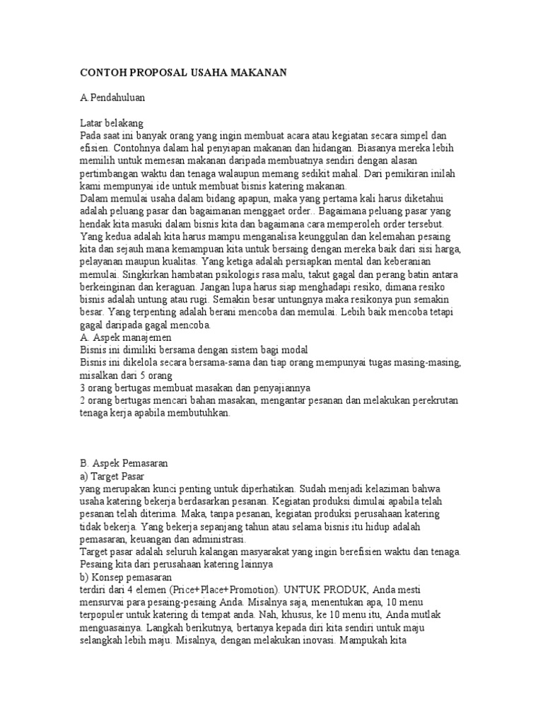 DOC) CONTOH PROPOSAL USAHA MAKANAN [ 1 | fajar fotocopy - Academia.edu