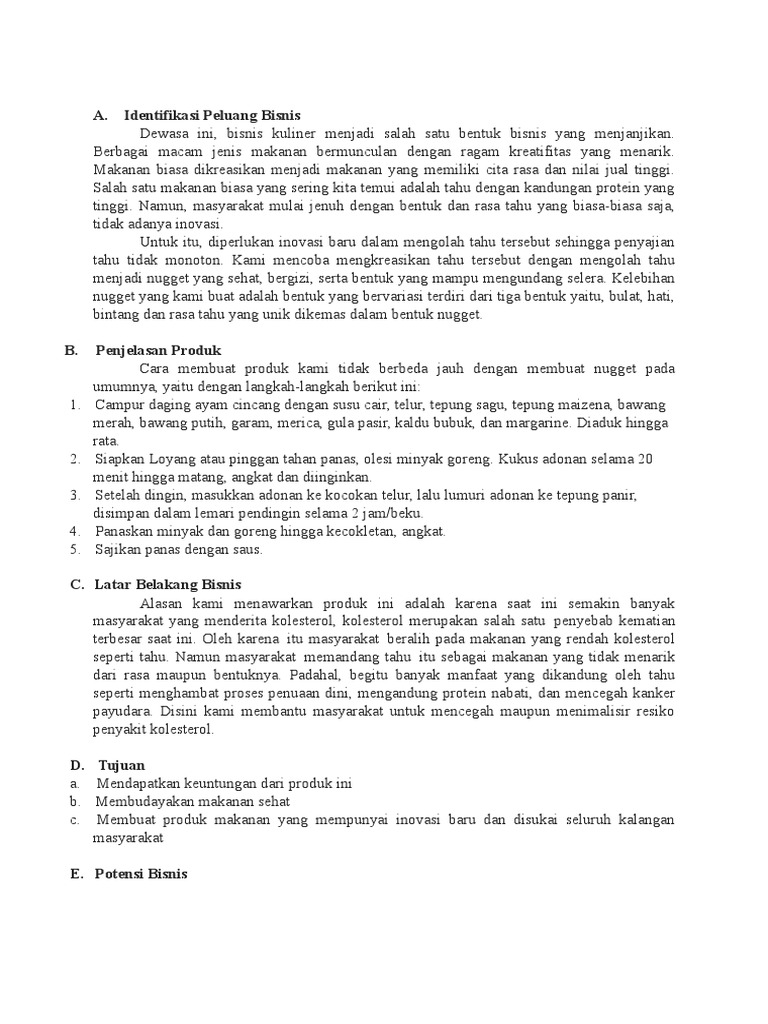 DOC) PROPOSAL USAHA MAKANAN RINGAN " PISANG NUGGET CERIA " Disusun untuk Memenuhi Tugas | kinanthi widy - Academia.edu