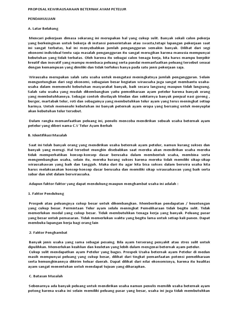 Contoh Proposal Usaha Budidaya Ayam Petelur | KEWIRAUSAHAAN - [DOCX Document]
