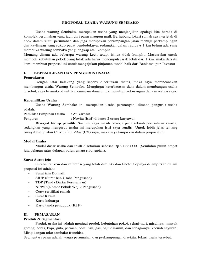 Pdf) Contoh Proposal Usaha Toko Sembako Singkat - Seputar Proposal
