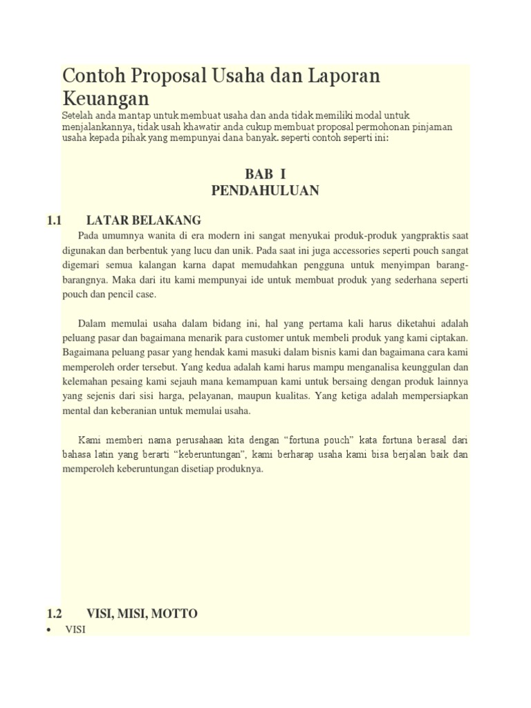Contoh Proposal Usaha Dan Laporan Keuangan