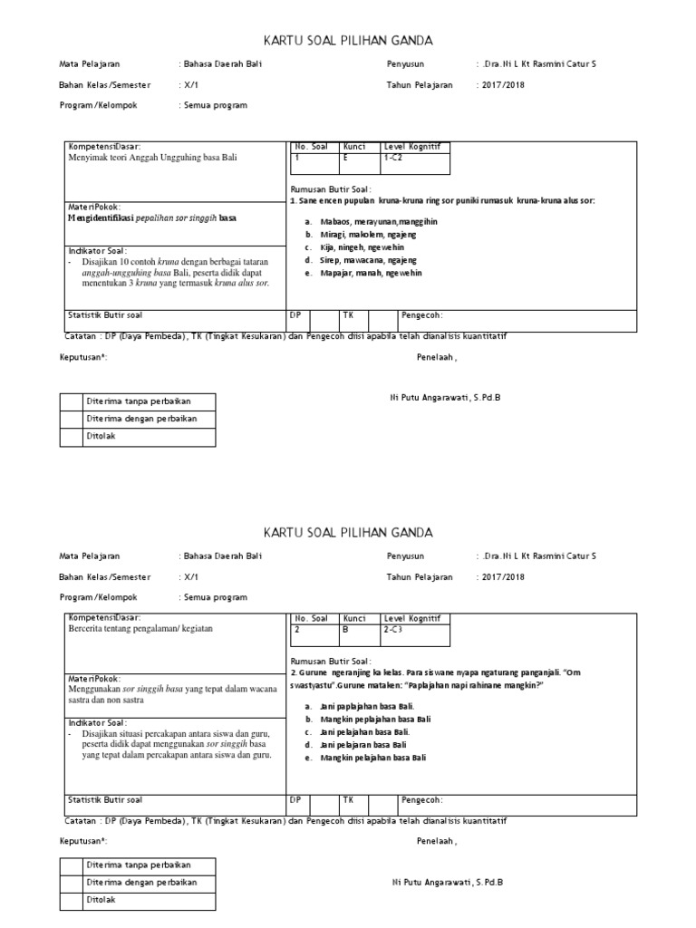 Soal Ulangan Akhir Semester 1 Bahasa Bali Kelas 9