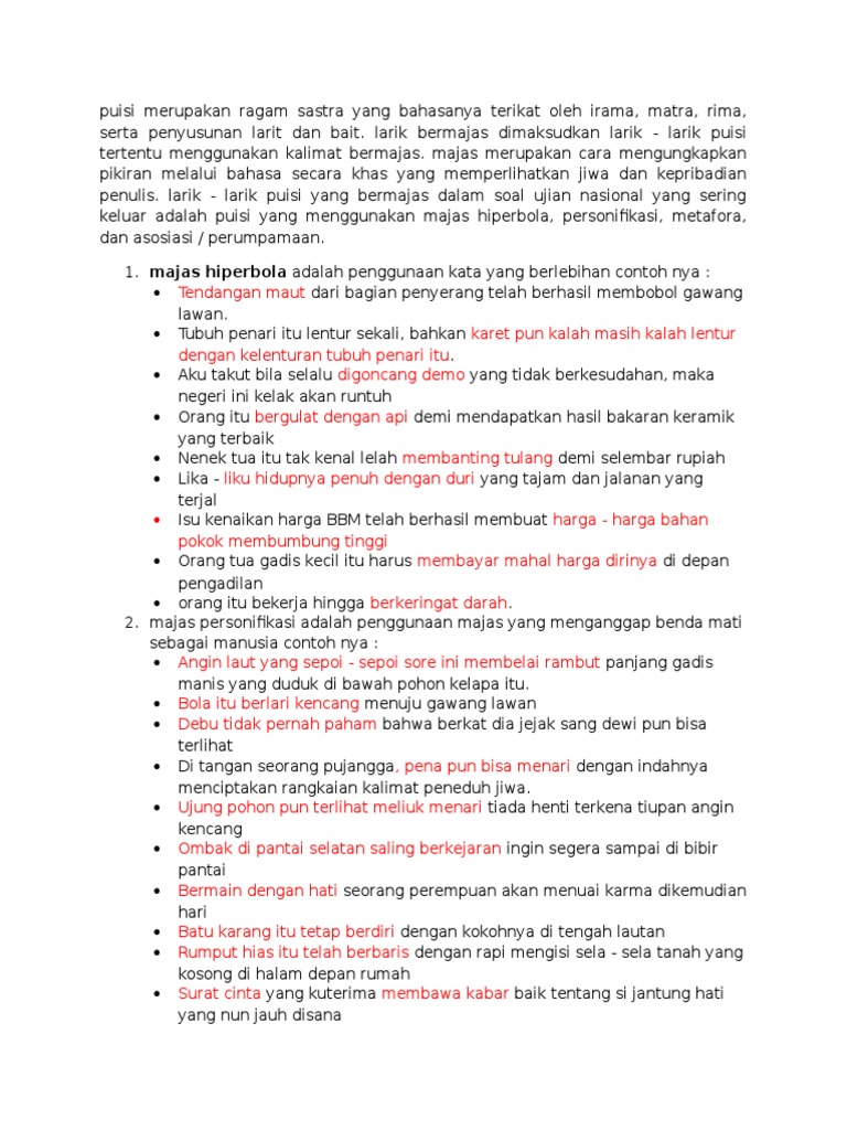 Contoh Puisi Bermajas Hiperbola Dan Personifikasi