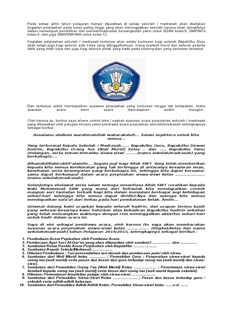 Contoh Susunan Acara Kegiatan Perpisahan Sekolah / Perpisahan Madrasah - Dadang JSN