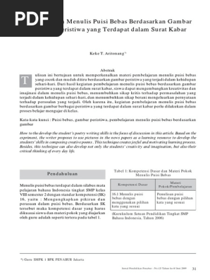PDF) Peningkatan Kemampuan Menulis Puisi dengan Teknik Gen Estetika dan Pengintegrasian Strategi Metakognitif Pada Siswa Kelas VII MTs YTI Nguling Tahun Pelajaran 2013-2014