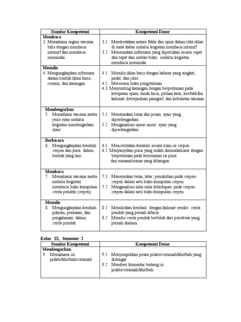 Standar Kompetensi Kompetensi Dasar Membaca