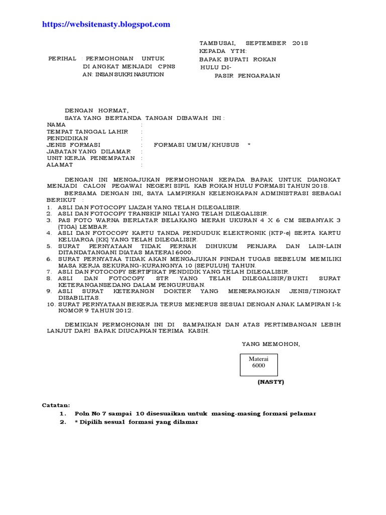 Contoh Surat Lamaran Cpns Baru Website Nasty
