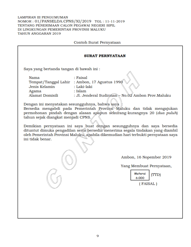 Contoh Surat Pernyataan CPNS Kemenkumham 2019, Berikut Draft Penulisannya - Tribunnews.com Mobile