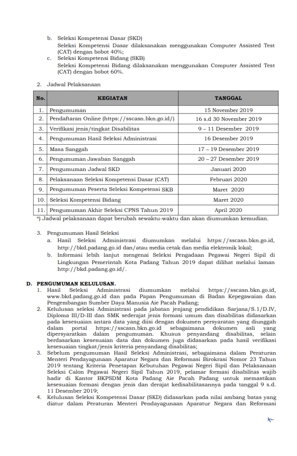Lowongan Kerja Lowongna Kerja D3 D4 S1 S2 CPNS Kota PADANG Tahun 2019