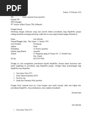 Contoh Surat Lamaran Kerja Alfamart Terbaru dalam Format MS Word yff Pinterest - BeritaTop