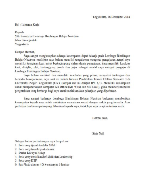 Contoh Surat Lamaran Kerja Guru Honorer Yang Masih Kuliah
