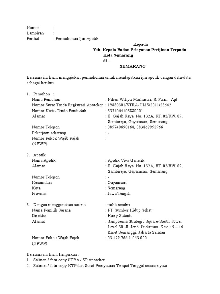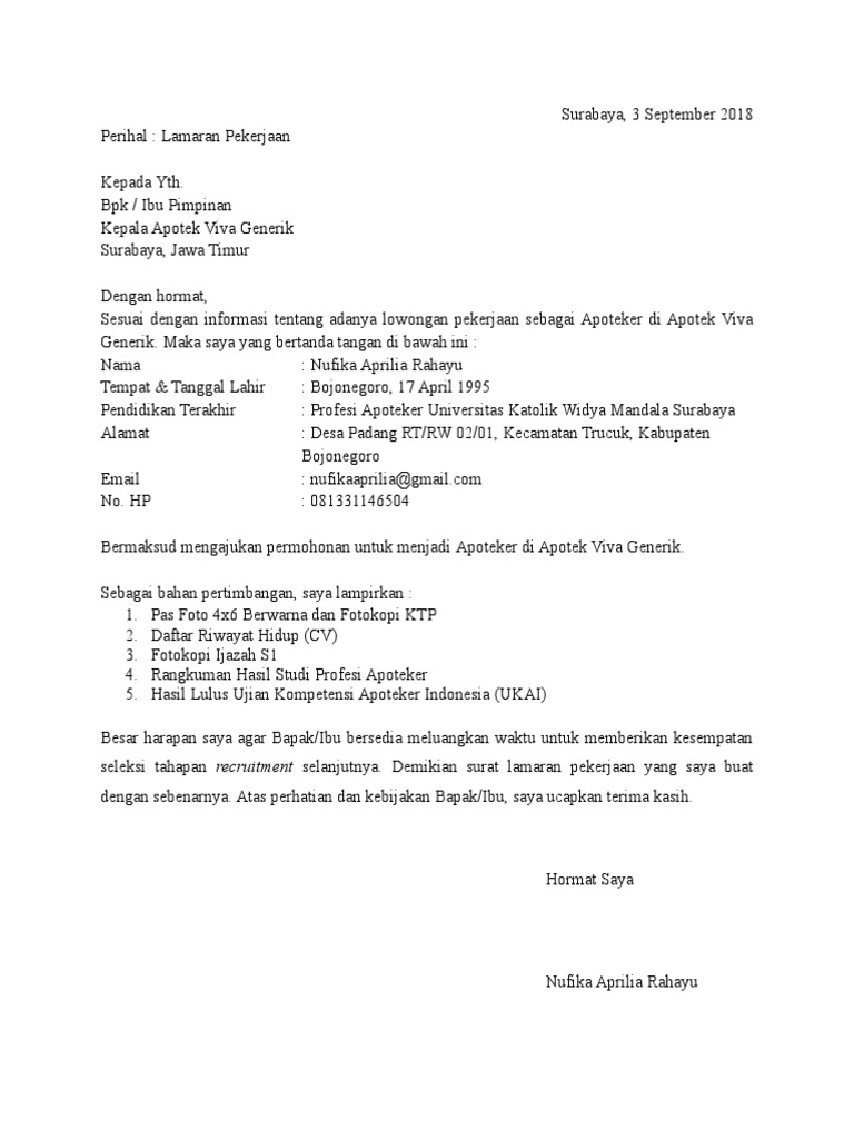 Contoh Surat Lamaran Kerja Di Apotek Viva Generik