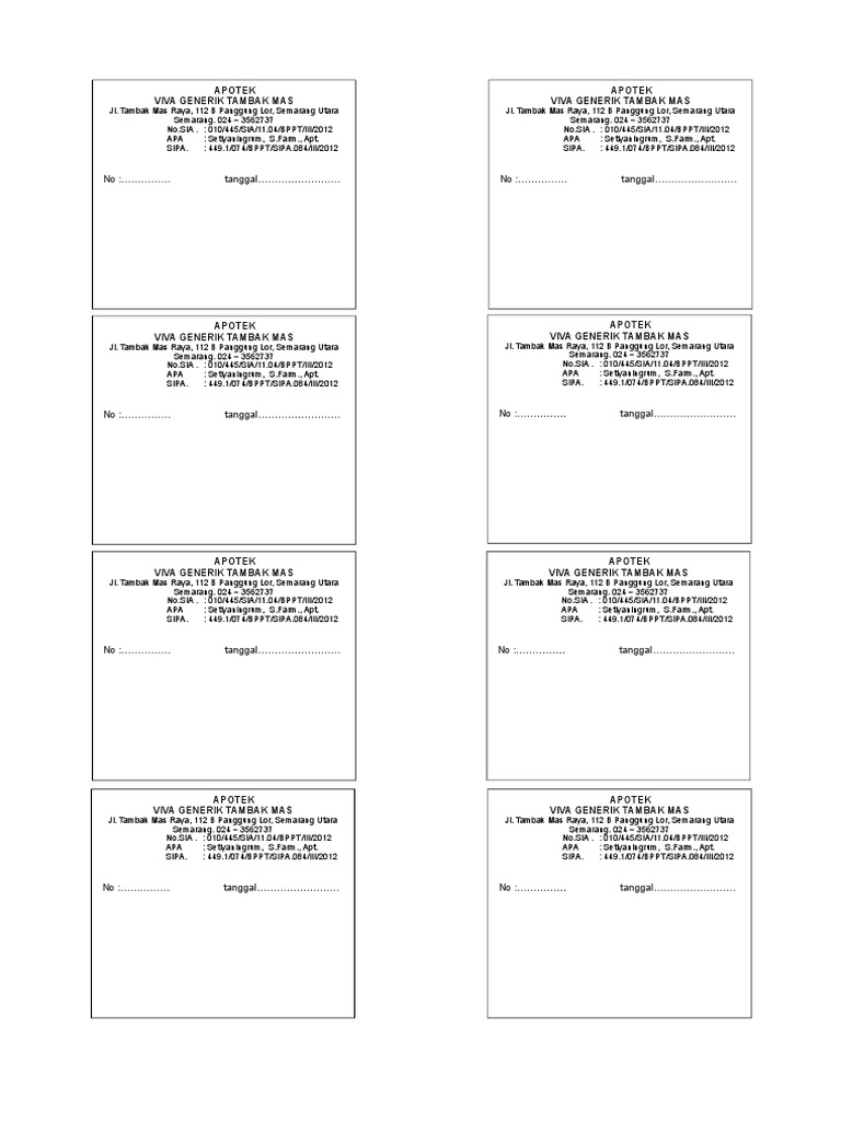 CEK LIST PERMOHONAN PENUTUPAN APOTIK. Nama Apotik :.. Alamat :.. No. Telp. :.. Nama APA :.. No. SIK/SIPA :.. Syarat Permohonan - PDF Free Download
