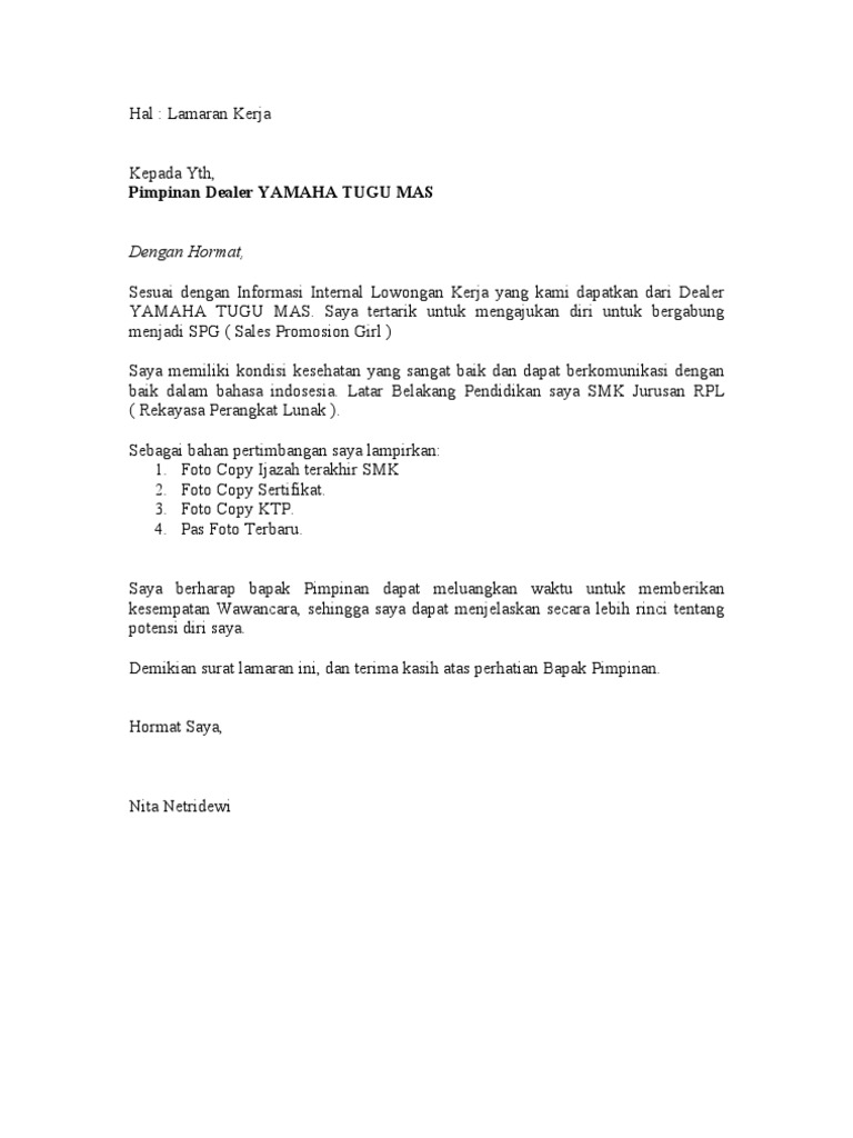 Contoh Surat Lamaran Kerja Di Sorum Yamaha - Contoh Seputar Surat