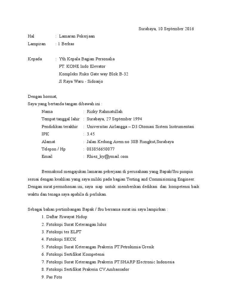 Surat Lamaran Kerja & CV Pt Kone Realmen