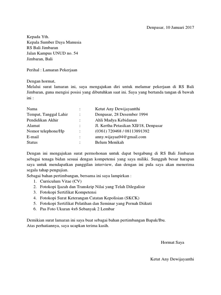 5+ Contoh Surat Lamaran Kerja di Hotel | KUTA PROPERTY