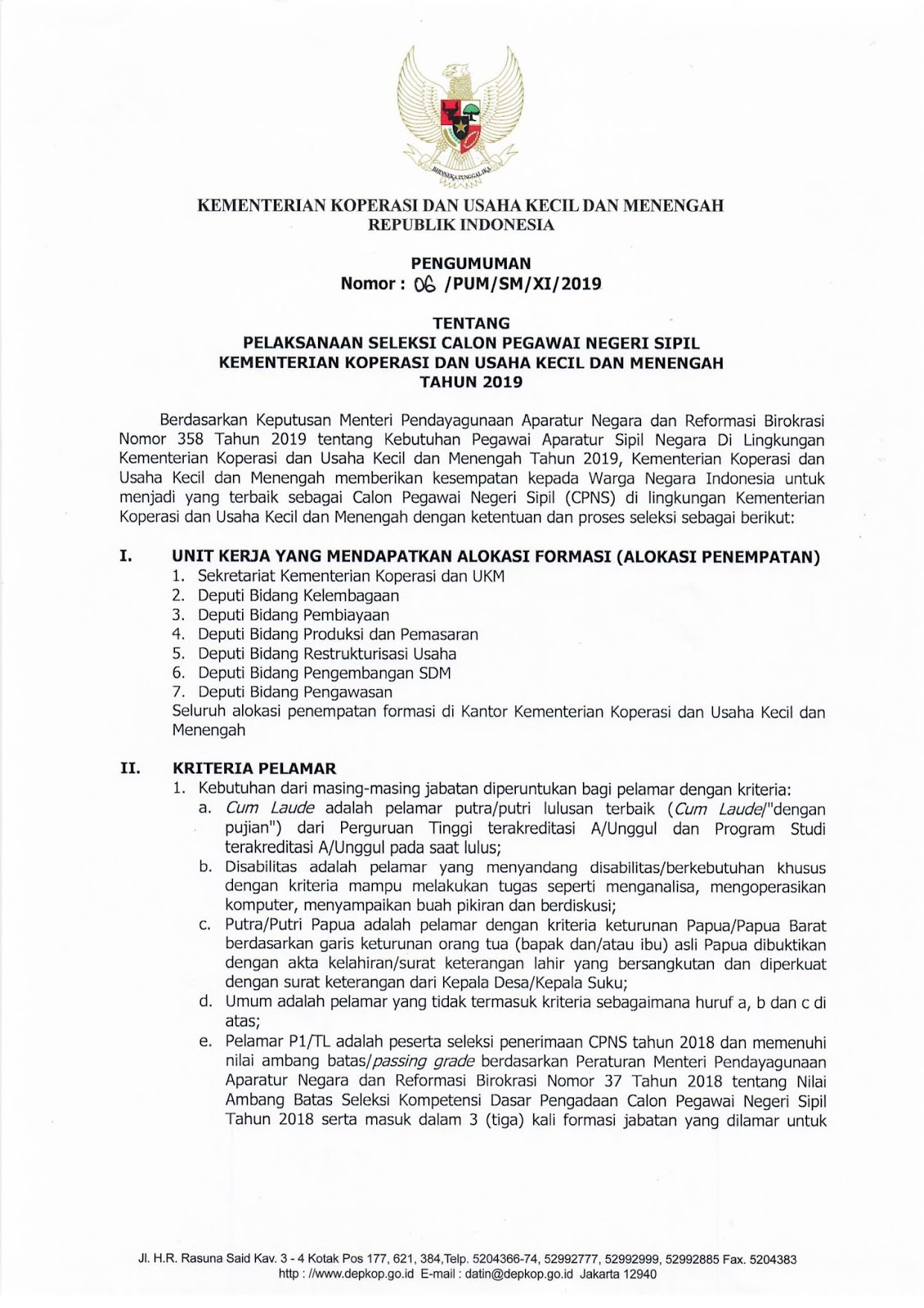 Lowongan CPNS Kementerian Koperasi dan Usaha Kecil dan Menengah Tahun Anggaran 2019 [98 Formasi] - REKRUTMEN LOWONGAN KERJA BULAN OKTOBER 2020