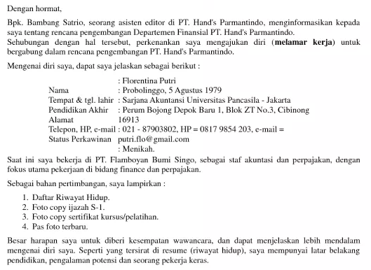 Struktur Surat Lamaran Kerja Yang Baik Dan Benar