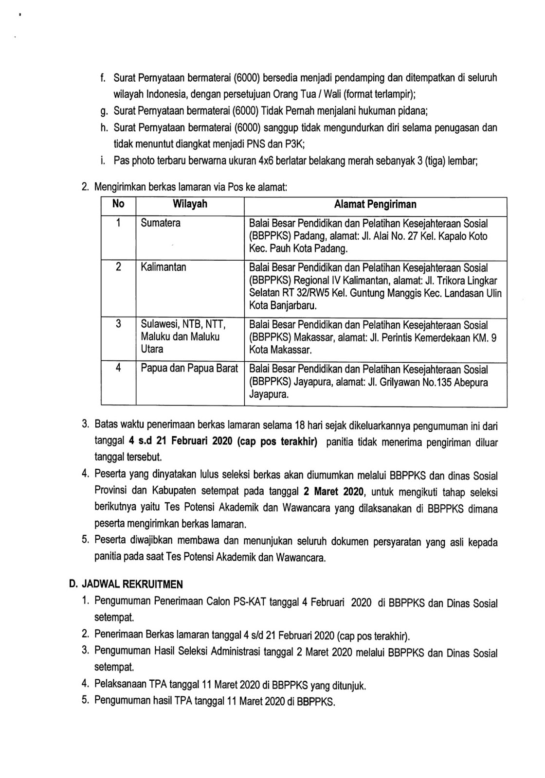 Rekrutmen Non PNS Pendamping Sosial KAT Kementerian Sosial Republik Indonesia Bulan Februari 2020 - REKRUTMEN LOWONGAN KERJA BULAN OKTOBER 2020