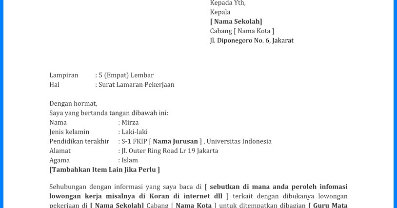 5+ Contoh Format Surat Lamaran Kerja Guru TK, SD, SMK Dan Honorer – MojokBisnis.com