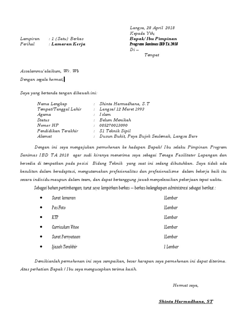 Surat Lamaran Kerja