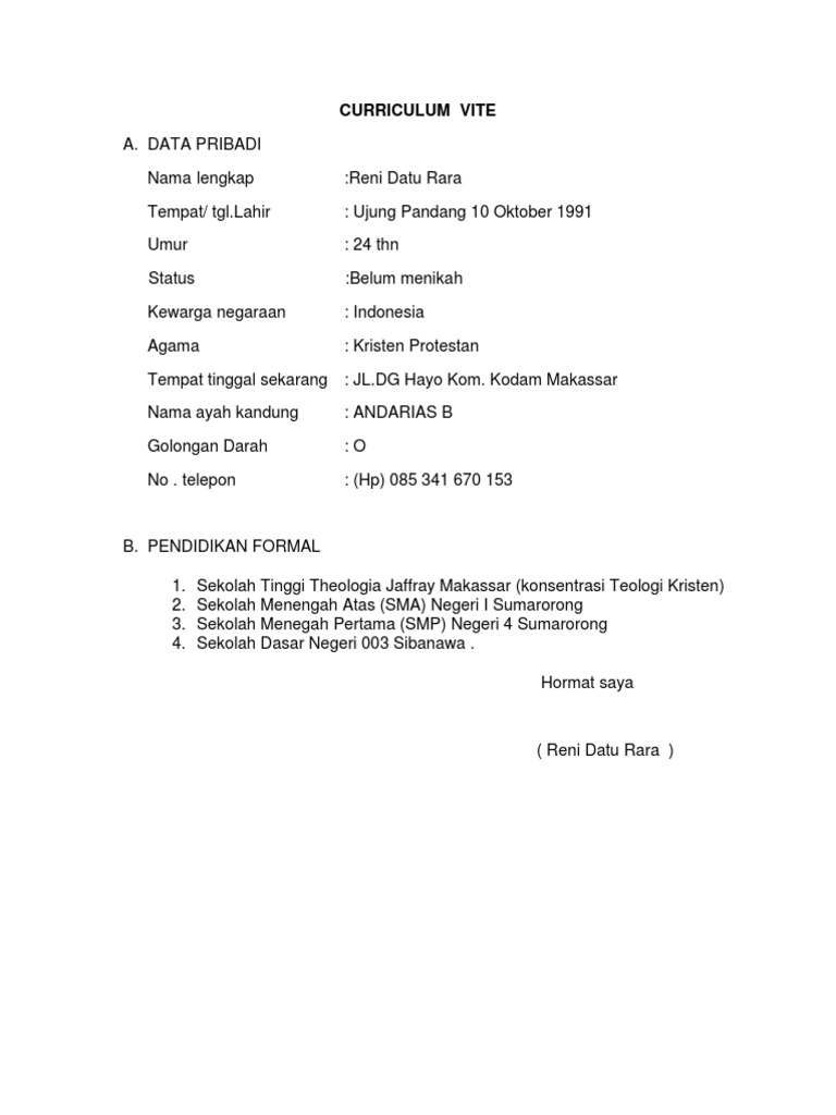 Contoh Surat Lamaran Kerja Ke Pizza Huts | Surat, Riwayat hidup, Pendidikan