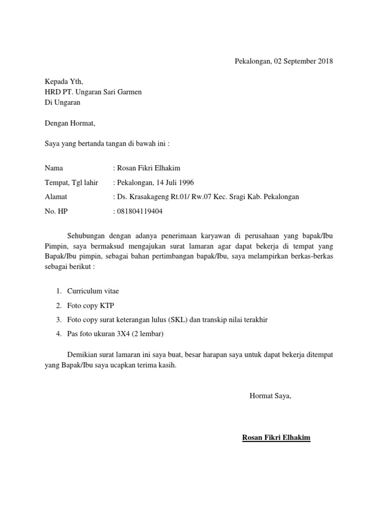 Contoh Surat Lamaran Kerja Di Pt Ungaran Sari Garment