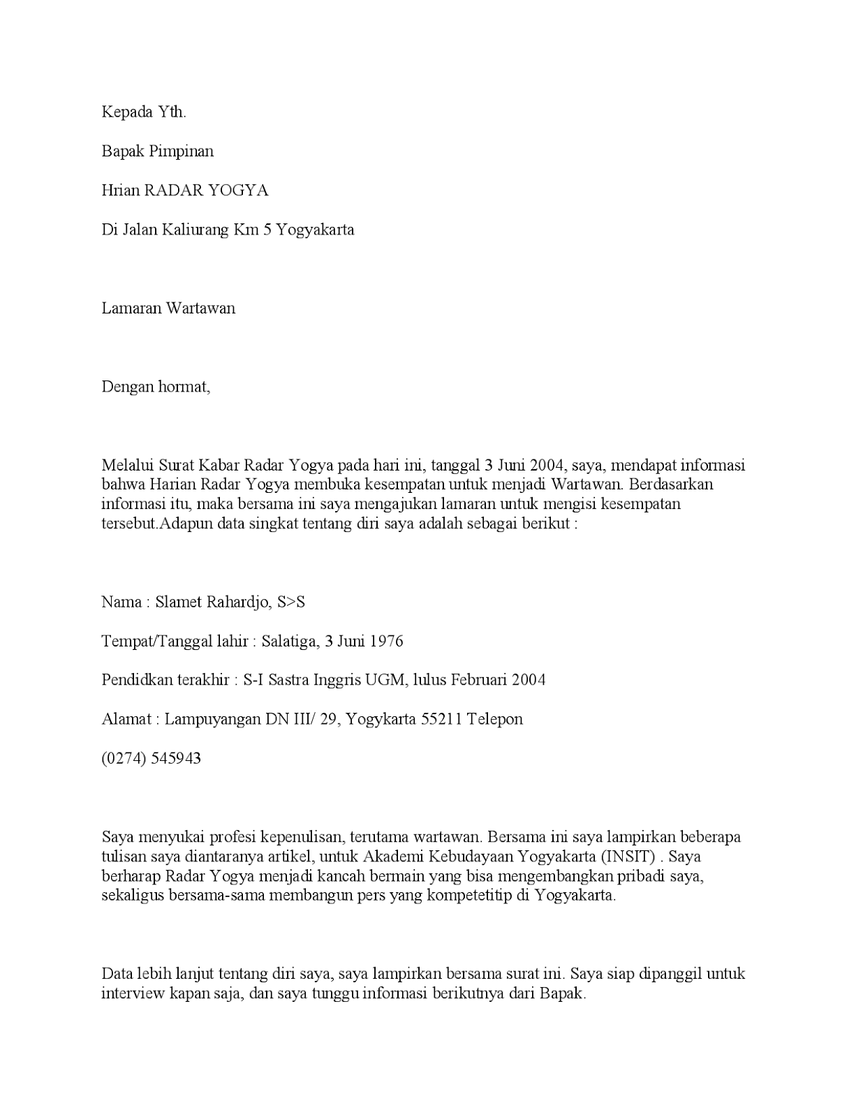 Contoh Surat Lamaran Kerja Jurnalis - ARasmi