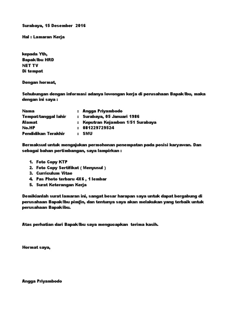 Contoh Surat Lamaran Kerja Di Televisi - Contoh Seputar Surat