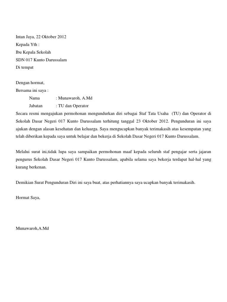 16 Contoh Surat Pengunduran Diri Dari Sekolah Lengkap - Contoh Surat