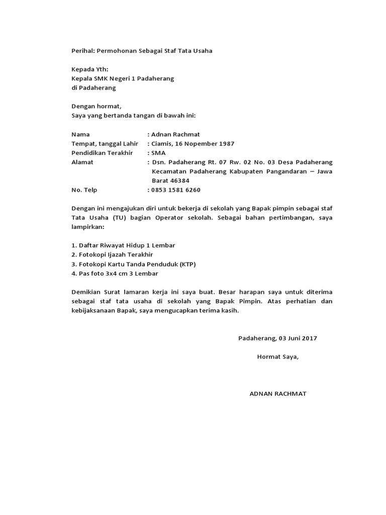 Contoh Surat Lamaran Kerja Sebagai Staf Tata Usaha Di Sekolah