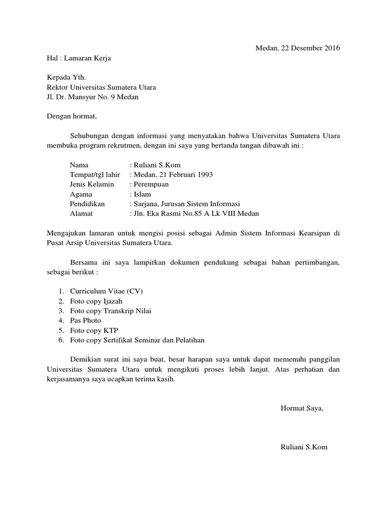DOC) Contoh surat lamaran kerja | Iki Dans - Academia.edu