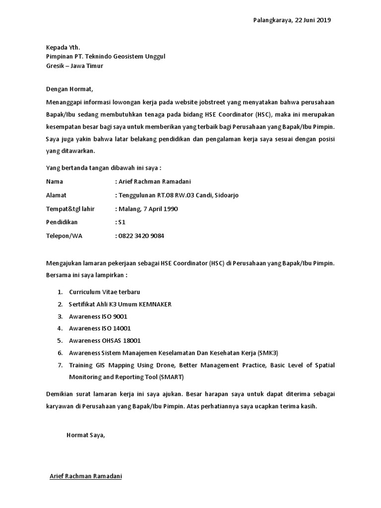 Contoh Surat Lamaran Kerja Via Jobstreet