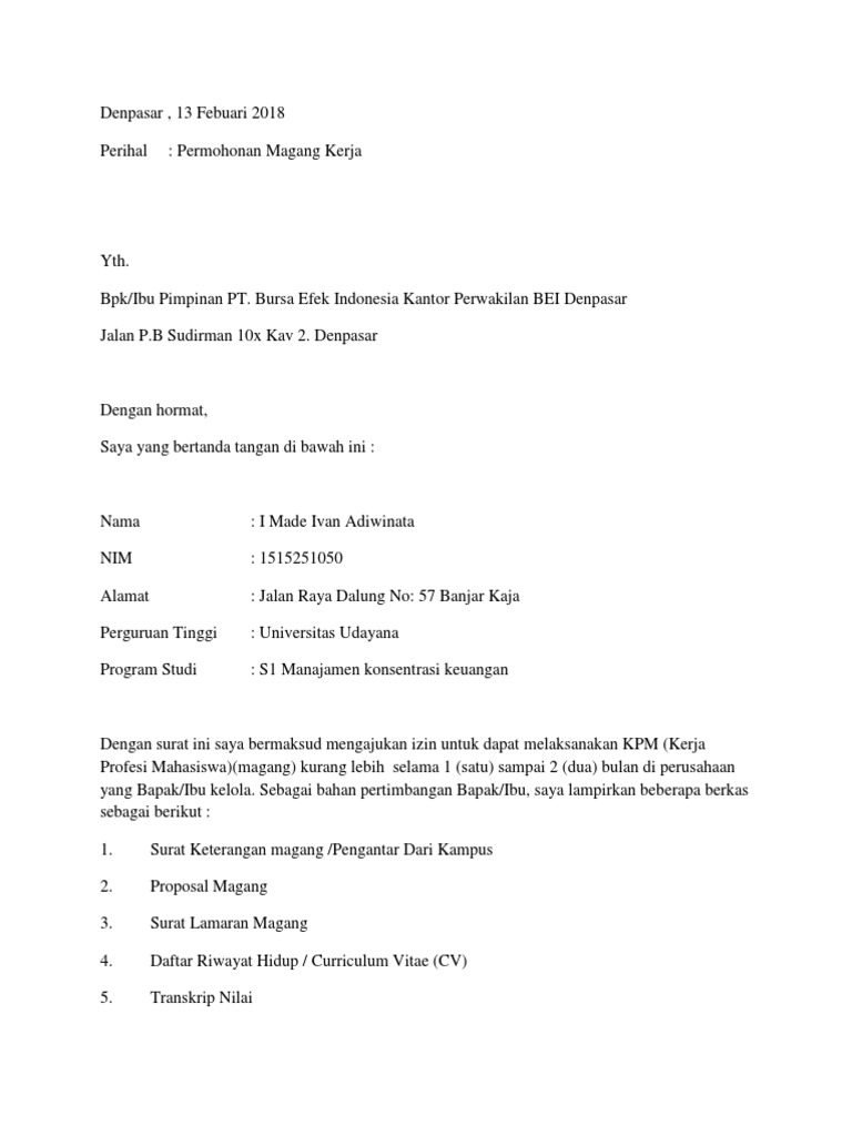 DOC) Surat Lamaran Magang | tantowi aminudin - Academia.edu