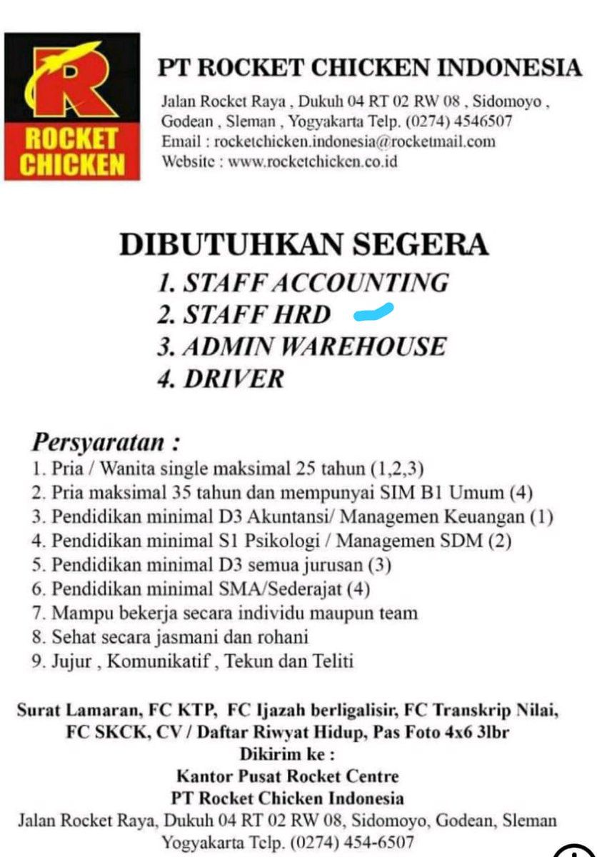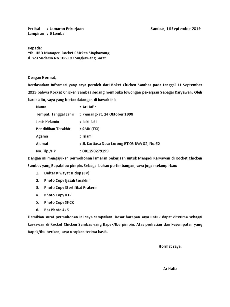 Surat Lamaran Kerja Di Rocket Chicken