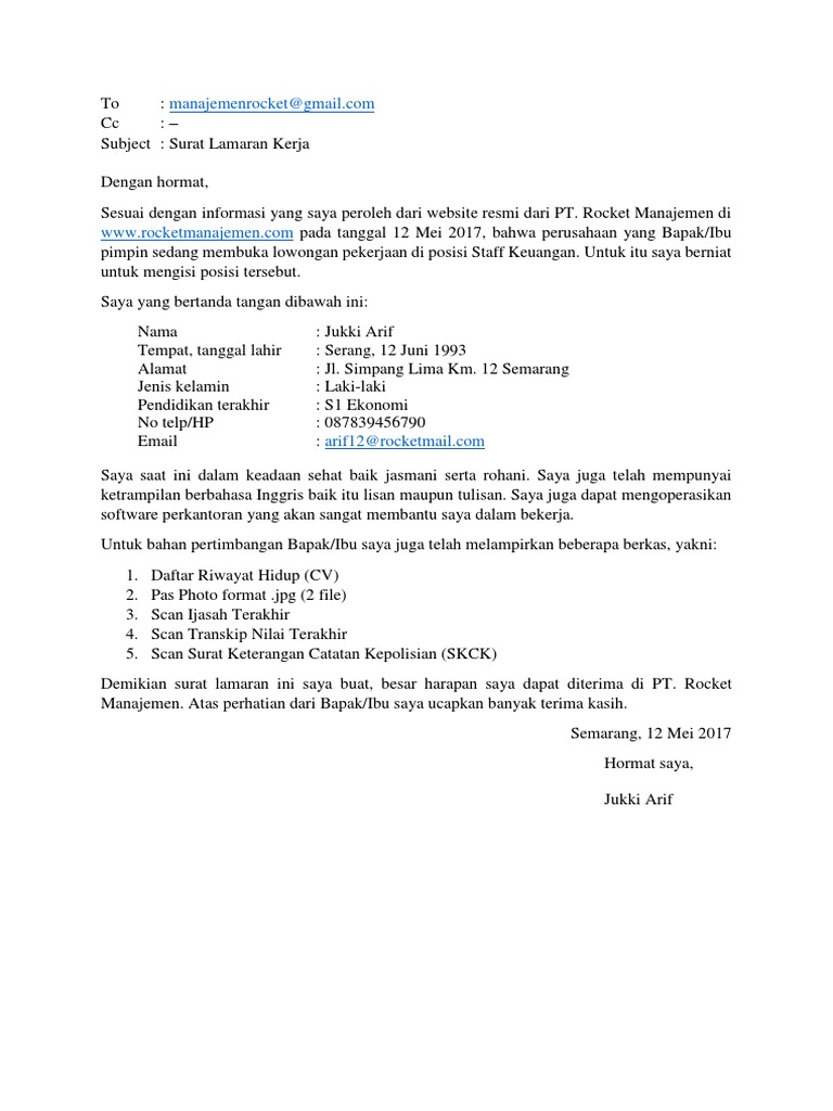 Contoh Surat Lamaran Kerja Via Email Hp - Kumpulan Contoh Gambar