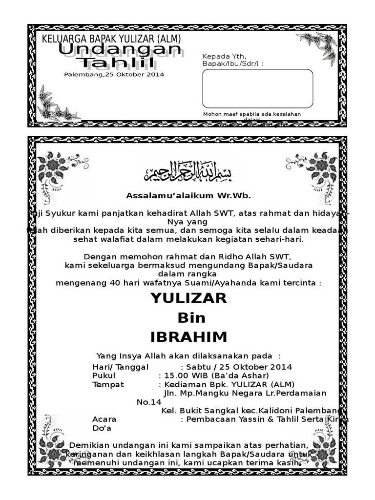 DOC) Contoh Undangan Tahlilan 40 Hari Meninggalnya | Haekal Iqbal - Academia.edu