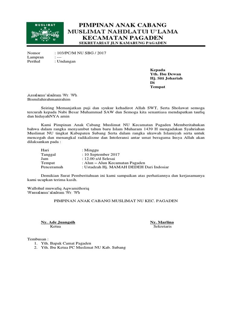 Contoh Surat Undangan Acara 1 Muharram - Helowinj