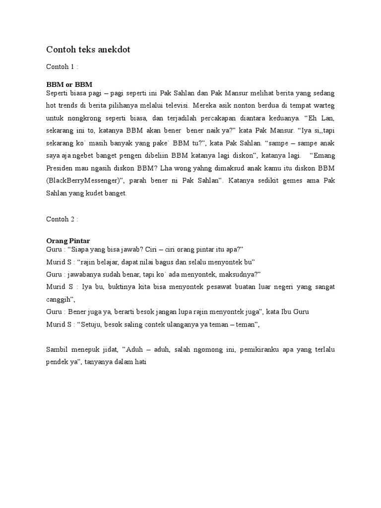DOC) Contoh Teks Anekdot tentang Pendidikan | sari sari - Academia.edu