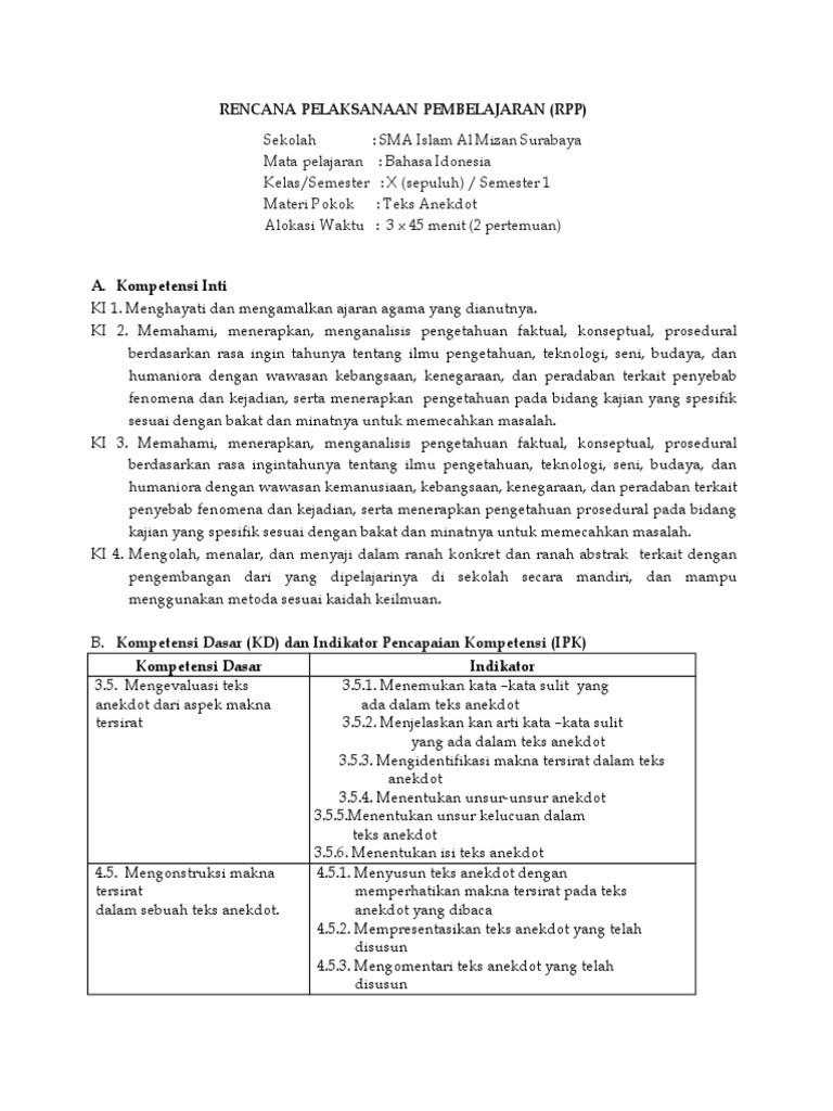 DOC) Rencana Pelaksanaan Pembelajaran Teks Anekdot | Subasita Anggriana - Academia.edu