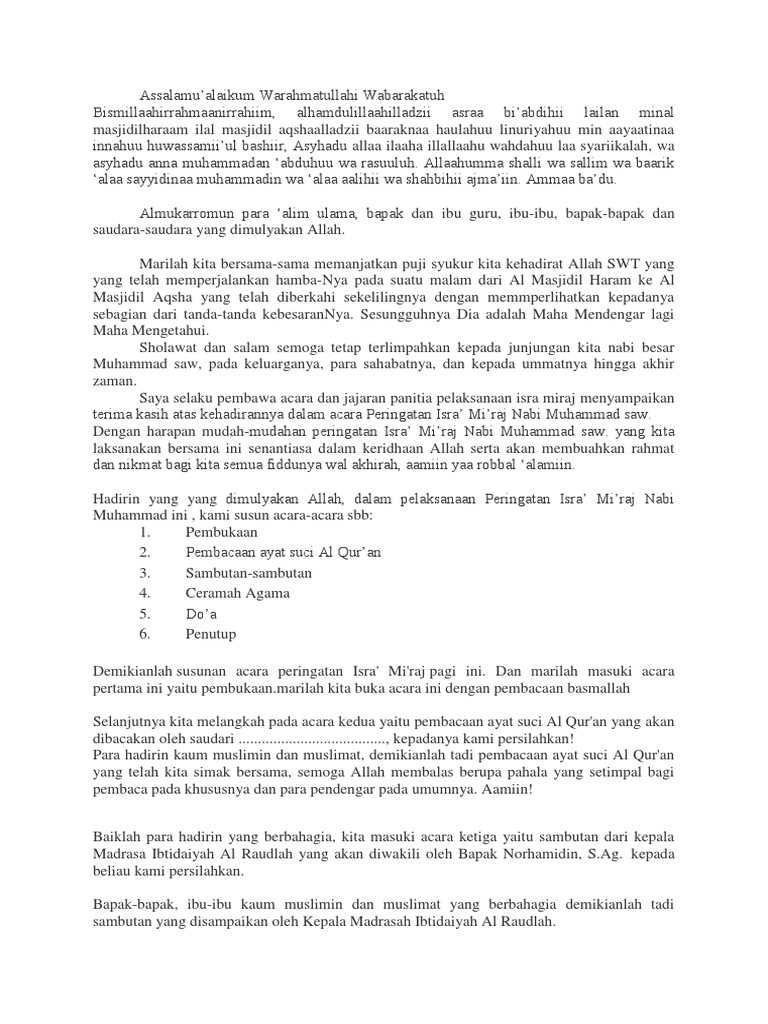 Teks Mc Isra Mi Raj Masjid - Berbagai Teks Penting