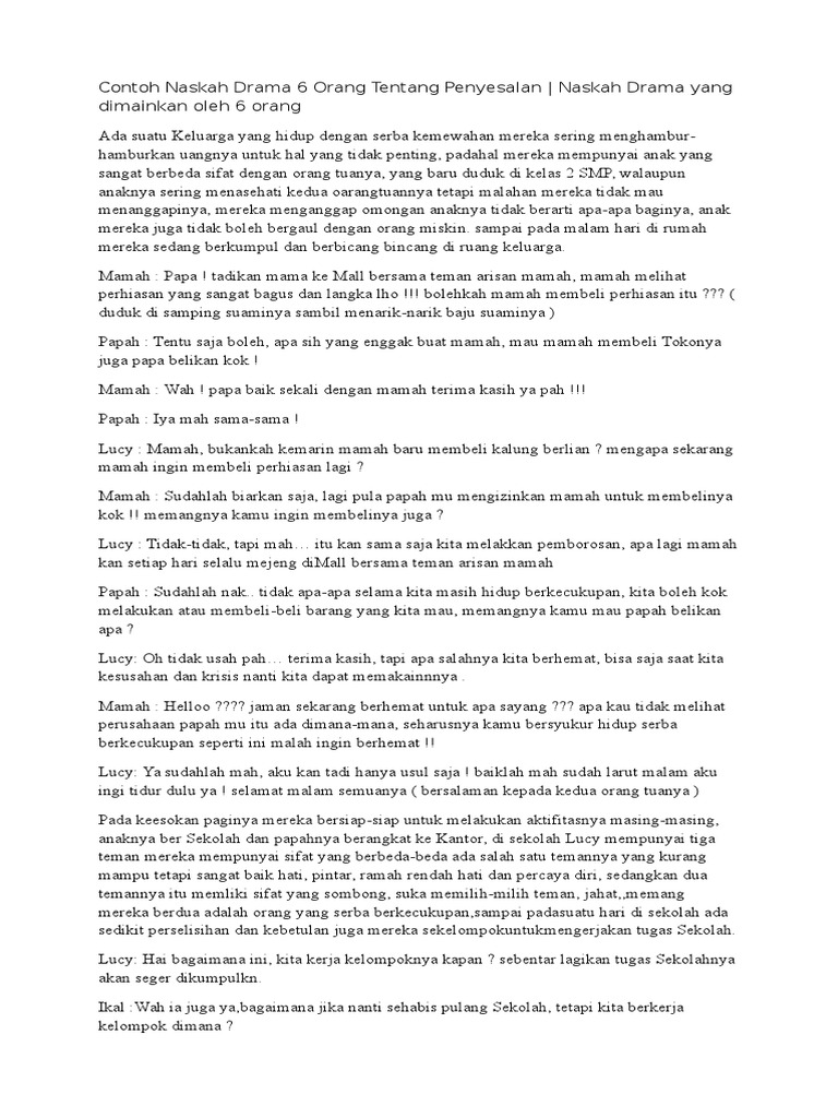Search Contoh Naskah Drama 6 Orang Tentang Penyesalan - SlideUs.Org