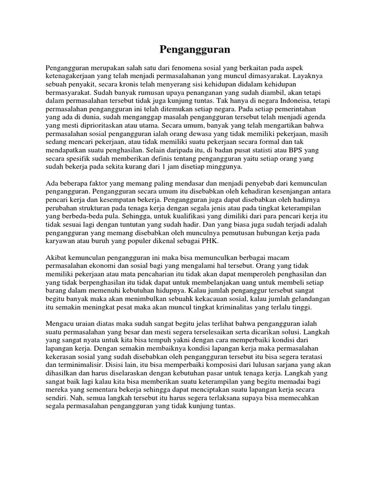 Contoh Teks Eksplanasi Pengangguran Singkat