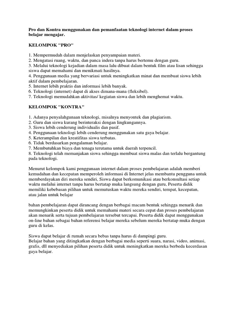 Pro Dan Kontra Menggunakan Dan Pemanfaatan Teknologi Internet Dalam Proses Belajar Mengajar
