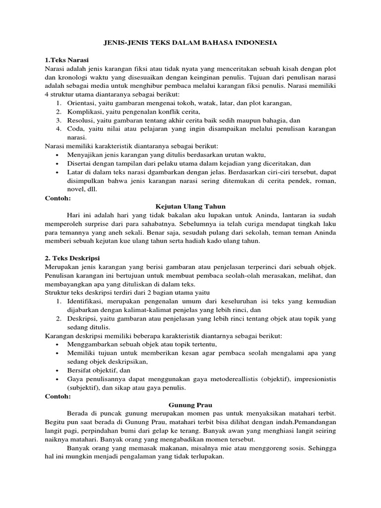 Jenis Jenis Teks Bahasa Indonesia